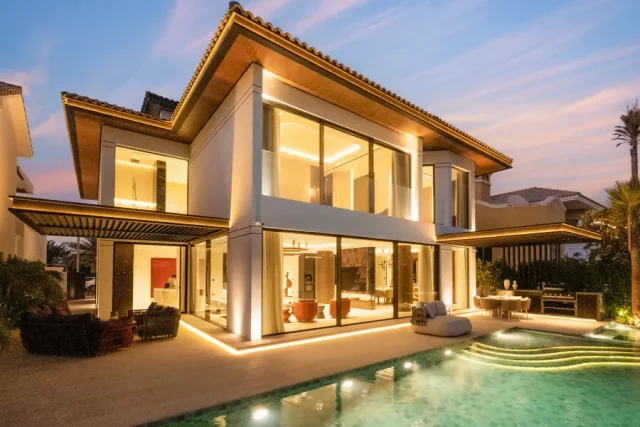 Exclusively with Christie’s International Real Estate Dubai, this five-bedroom villa rests on the iconic Palm Jumeirah beach and enjoys lavish family-friendly luxury. The vast 6419 sq. ft. home on an extendable 7079 sq. ft. plot is offered fully furnished, with highly sophisticated interiors, relaxing amenities and sweeping sea views. This is a masterpiece in luxury living that blends refined indoor privacy with outdoor serenity.